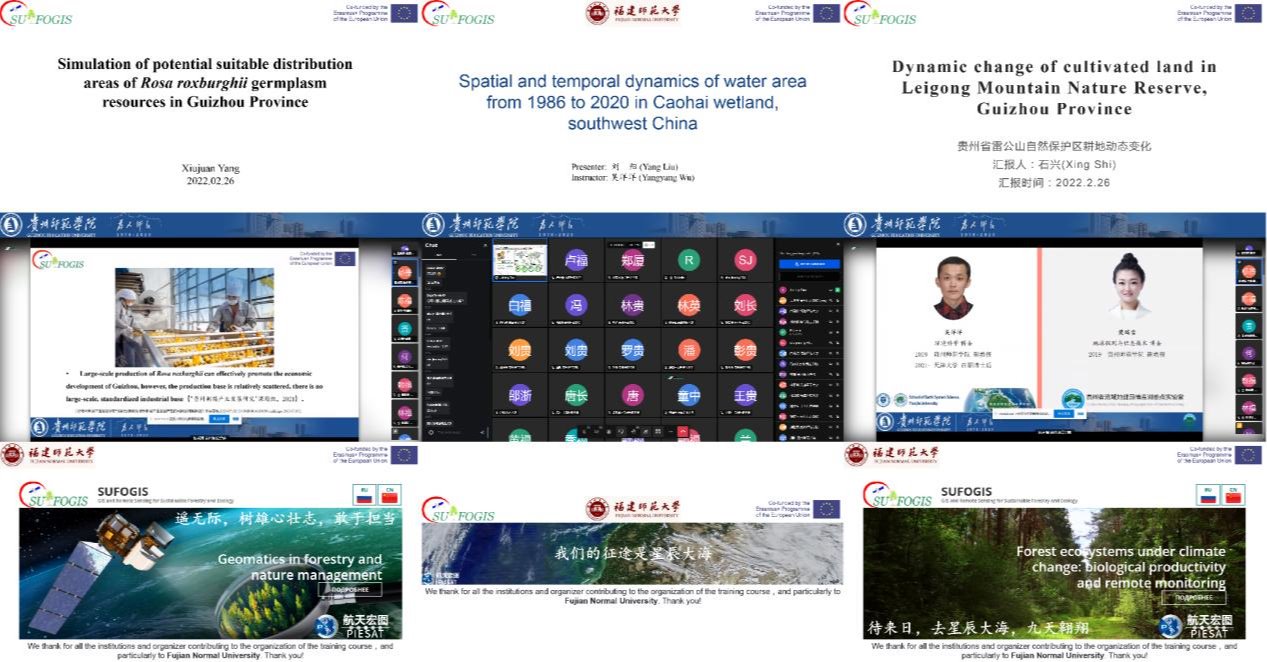 为了提高国际交流合作水平,2022年2月14-日26日(北京时间),贵州山地研究院罗光杰教授、贵州省流域地理国情监测重点实验室吴洋洋、樊瑞雪副教授等带领星空科技官网入口20余名同学参加了由福建师范大学承办的欧盟合作项目GIS And Remote Sensing For Sustainable Forestry And Ecology(SUFOGIS)冬季学校,限于疫情防控需要,本次冬季培训采用线上会议方式开展。参加此次会议的有中国、俄罗斯、欧盟等国内外专家学者与高校学生。本次活动得到欧盟ERAMUS+ SUFOGIS项目(598838-EPP-1-2018-EL-EPPKA2-CBHE-JP)的资助。
