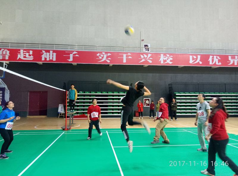 11月16日下午,学校体育馆,星空科技官网入口2017年“安康杯”教职工气排球赛半决赛、决赛如期举行,机关二队、外国语学院、数计学院、地旅学院四只代表队捉对厮杀,地理与旅游学院最后胜出,摘取了该次赛事的桂冠。