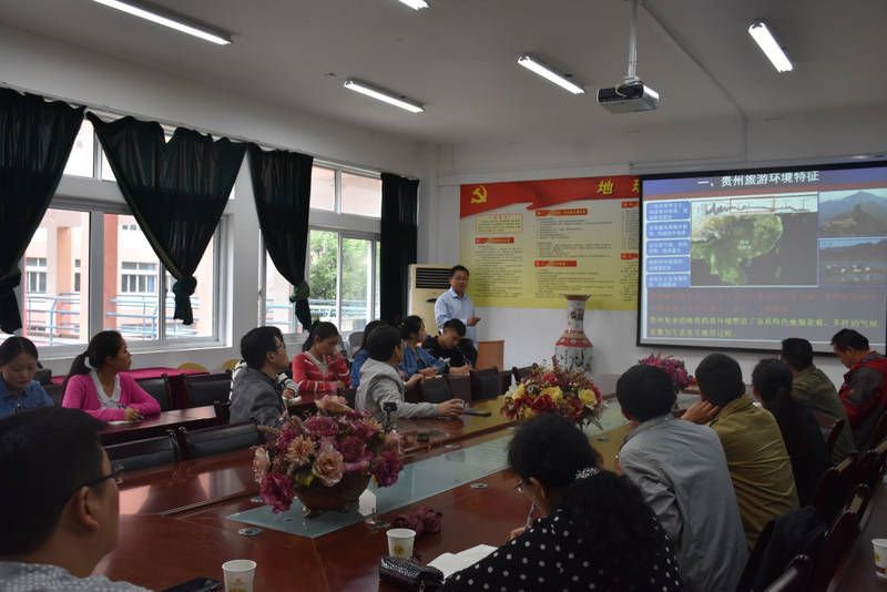 5月24日上午,贵州旅游研究院(筹)在地理与旅游学院会议室组织召开第二届山地旅游学术研讨会,李存雄校长出席本次会议并指导研究院建设工作。会议由校长助理徐凤增主持,地理与旅游学院、化学与生命科学学院、历史与社会学院等相关专业师生参加会议。与会人员首先听取了地理与旅游学院罗光杰博士作的《贵州山地旅游环境特征与研究展望》专题学术报告。罗光杰围绕地质、水文、气象、岩土、人文等要素介绍了贵州山地旅游特征,提出了贵州山地旅游环境研究现状、问题及其未来发展方向,并就旅游环境大数据平台建设提出了具体思路与框架。
