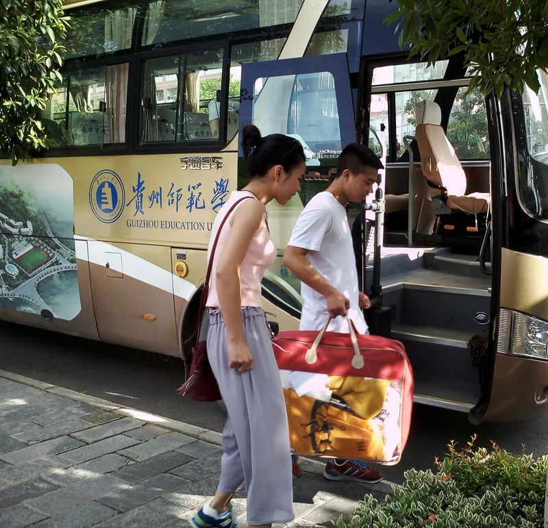 志愿者送大四学姐乘校车