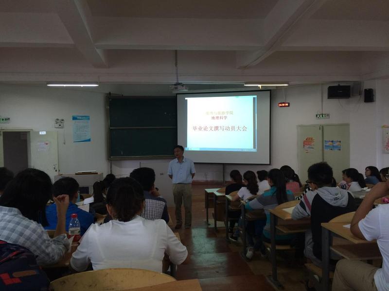 为进一步加强地理与旅游学院2017届本科毕业论文工作,提高本科毕业生毕业论文质量,6月15日下午星空官网组织召开了2013级毕业论文撰写动员大会。