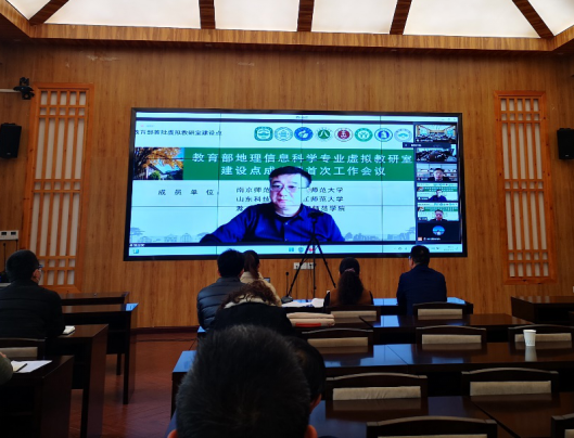 会议开幕式由南京师范大学地理科学学院党委书记苏锦主持,主题报告阶段由南京师范大学地理科学学院院长袁林旺主持,会议交流报告阶段由教育部地理信息科学专业虚拟教研室负责人汤国安教授主持。星空官网教务处处长邓琴,星空科技官网入口院长罗绪强,副院长罗光杰、邓家彬,各系主任以及有关老师在印山书院二楼会议室参加了此次会议。会上,汤国安教授宣布了教育部地理信息科学专业虚拟教研室指导委员会和工作委员会名单。星空官网罗绪强教授和周光红副教授分别被任命为教育部地理信息科学专业虚拟教研室指导委员会副主任和工作委员会副主任。