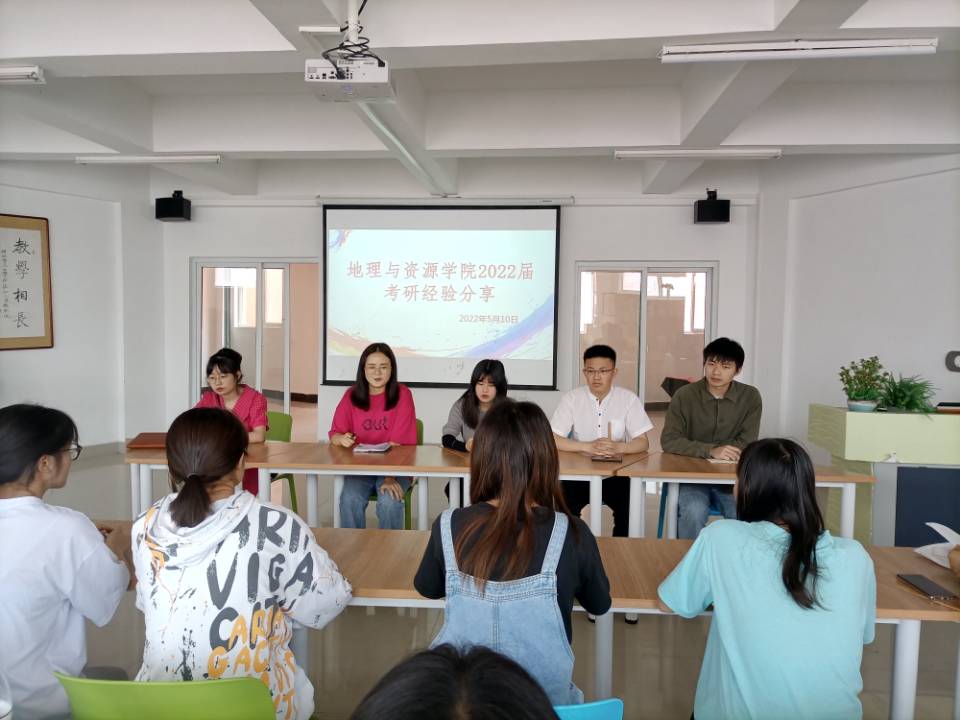 会上,2018级考研上岸的陈凤、陈雨萱、刘娜、杨荣、杨金礼等5名同学,分别围绕农学、自然地理学、地理学科教学论、中科研山矿、生态学等方向为在场的低年级同学交流了学习方法,重点对考研学校的选择、备考规划、心态调整以及公共科目高分技巧进行了经验分享;同时,还鼓励同学们选择好考研目标后,不要轻易放弃,备战考研是一个漫长的过程,要有危机意识和吃苦意识,在备考期间,要劳逸结合,在紧张复习之余,要积极锻炼身体。