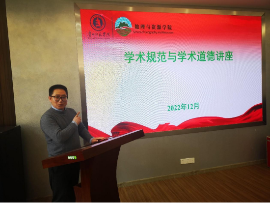 罗绪强旁征博引,深入浅出,详细讲解了课题申报、学术成果发表过程中必须恪守的各种学术规范,要求大家端正治学态度、恪守学术规范、坚守学术诚信,从自身做起,从源头上避免学术不端行为的出现。