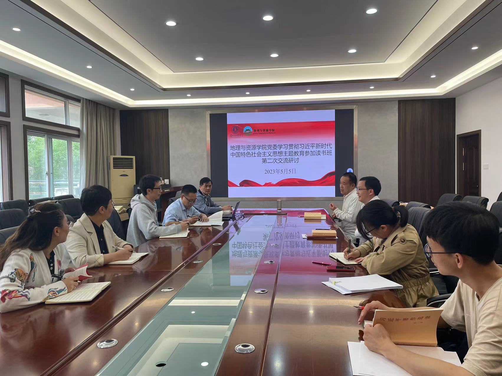 55日,地理与资原学院在宁静楼323会议室开展第二次读书班交流研讨会。学院党委班子全体成员参加会议,副院长陈起伟、党支部书记林丽、张其芳列席会议。会议由党委书记吴亚平主持。