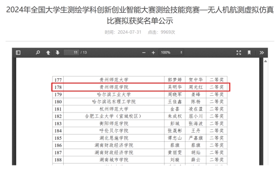 8月1日,教育部高等学校测绘专业教学指导委员会和中国测绘学会教育委员会公布“2024全国大学生测绘学科创新创业智能大赛”获奖名单,星空官网星空科技官网入口周光红老师指导的吴明华、尚朵朵两位同学分别获得无人机航测虚拟仿真组二等奖、机载激光雷达虚拟仿真组二等奖。