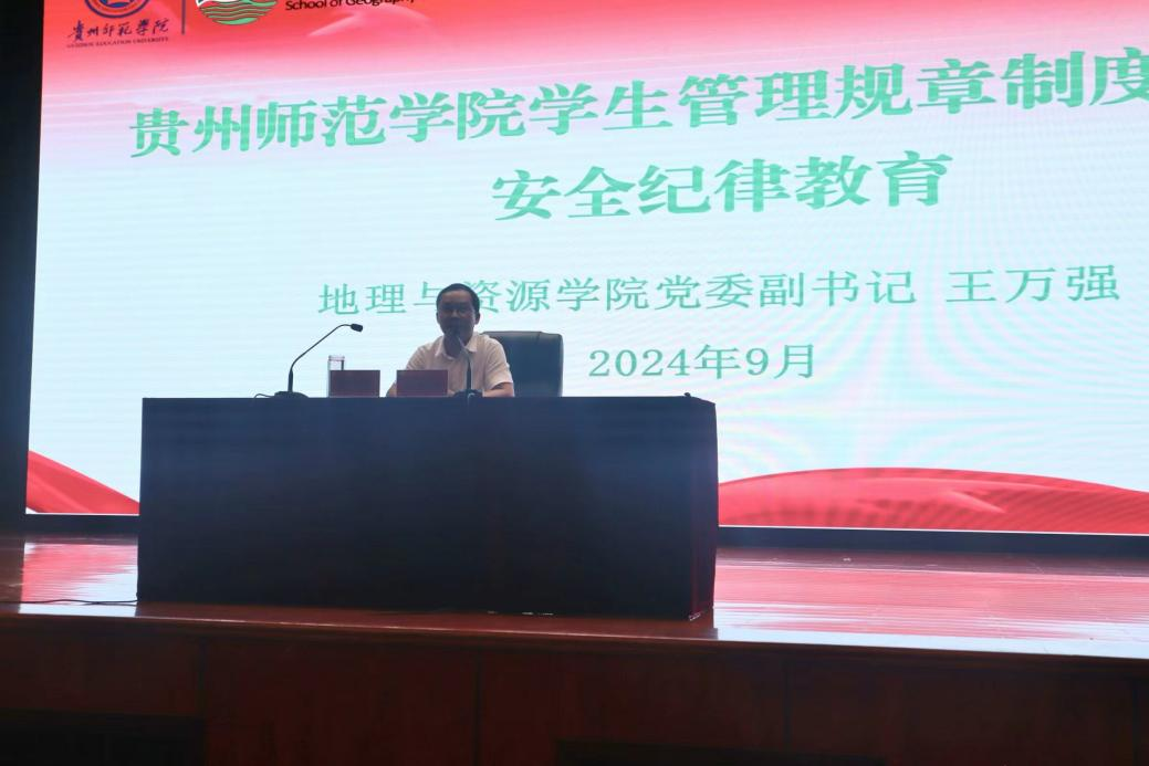 王万强以《安全纪律教育及学生管理相关规章制度解读》为题,为新生详细解读了学校学生安全管理的相关规章制度。他希望同学们在大学期间珍惜时光,树立理想,明确目标,做好规划;珍惜生命财产,时刻绷紧安全这根弦,不断提高安全防范意识,确保生命和财产安全;珍惜前程,严格遵规守纪守法,不要让违纪违法成为青年成长成才的绊脚石。
