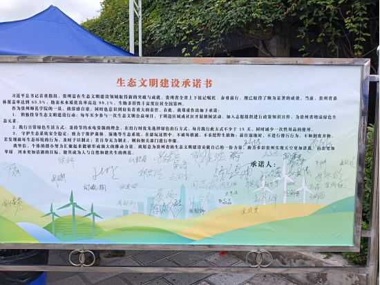 活动现场设置了互动区域,新生们在志愿者引导下随机抽取印有生态知识的宣传卡,卡片内容着重体现了习近平总书记关于贵州生态文明建设的重要讲话精神。随后,新生们在印有生态文明建设承诺书上签名,承诺在学习期间践行绿色生活方式,参与生态保护行动,传播生态文明理念。