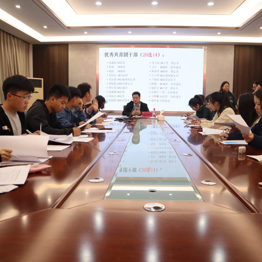 此次会议由学生会主席陈凤主持,团支部书记姜志辉莅临现场,会议的评选小组由各班级团支书及学生会主席团成员组成。会议开始,首先由陈凤说明了投票方式,之后各评议小组轮流审阅竞选人的相关材料筛选出合适人选后进行线上匿名投票,投票结果当场公布。会议评选选举出张露婷、李玉欣、胡勤勤、王小玥、杨涯、邓先勤、文江、段紫嫣、胡洪文、杨洪茗、卢林亚、杨迪、高丽文、杨娅等14人获得优秀共青团干部奖章、胡涛获得勤学求真青年奖章、先诗毅获得自立自强青年奖章、丁晓雅获得创新创业青年获章、陈凤获得十佳优秀共青团员奖章、18级地科一班获得五四红旗团支部奖章。评选过程中姜志辉向同学们说明了优秀共青团干部这些奖章的意义所在,希望同学们砥砺前行,担负起历史的重任。评选结束后,姜志辉对团支书们提出以下要求:一、要求团支书工作认真,积极体现自己的工作价值和意义。二、要抓住机会,形成自己的独立人格,形成引导的风范,起到模范带头作用。努力追求,积极向党组织靠拢。